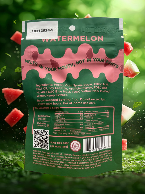 A burst of summertime in every bite! Mouthwatering watermelon flavor infused with premium legal cannabis for a refreshingly chill experience.